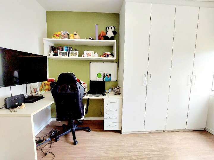 Ficam móveis planejados da cozinha, dormitórios, banheiro social e da suíte.