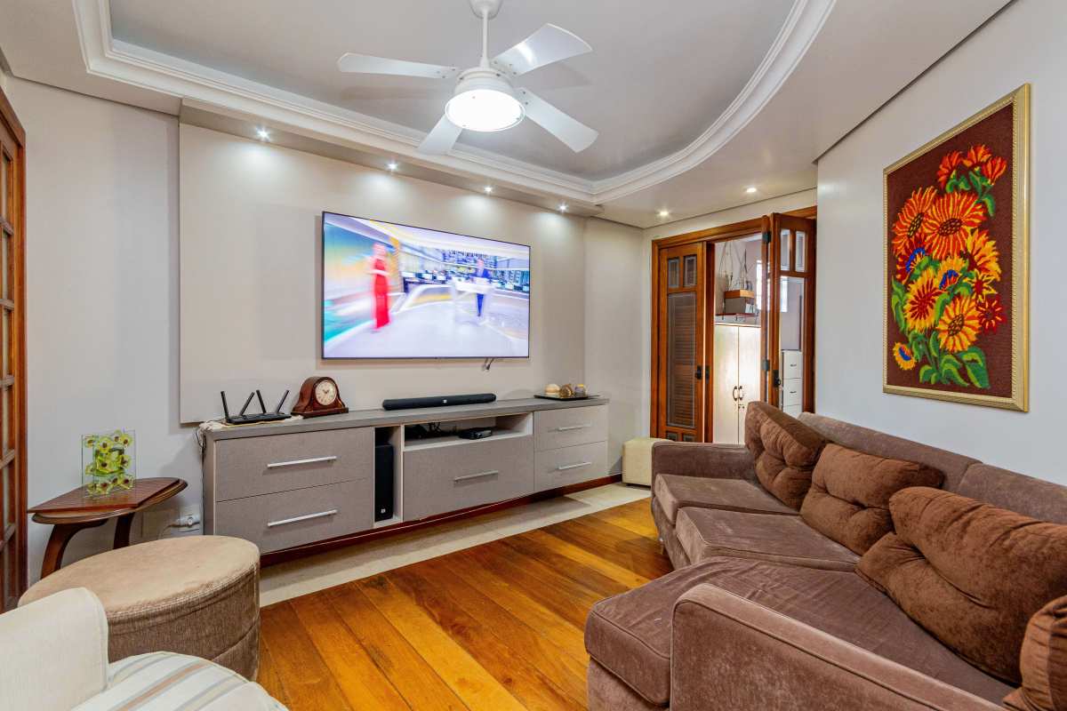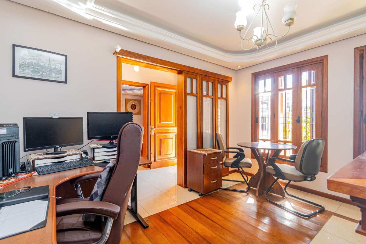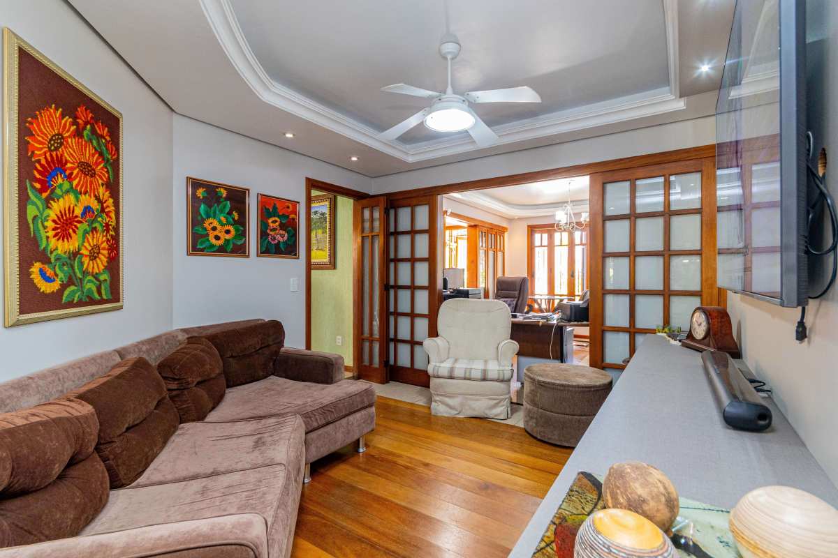 Casa com 304 m²de área privativa, no Jardim Lindóia. São 2 pisos e um pátio com lavanderia e gás central, garagem para até 3 carros. Na parte térrea, uma aconchegante sala de estar com lareira, sala de TV, sala de visitas, sala de jantar, lavabo, gabinete com banheiro, e uma cozinha linda mobiliada. Na parte superior conta com 04 dormitórios, sendo 1 suíte, com closet e sacada; mais 3 dormitórios, 1 banheiro social e uma sala de estar de frente para a piscina. No pátio salão de festas equipado com churrasqueira e piscina. Agende sua visita.