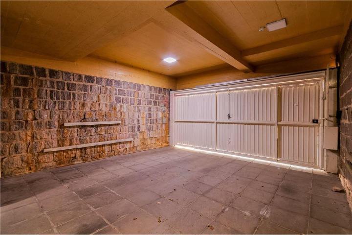 Garagem: Espaçosa o suficiente para dois carros e com acesso interno ao primeiro piso. A garagem também abriga a central de gás da residência e uma pequena despensa.