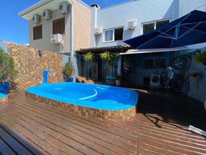 Excelente sobrado semi mobiliado no loteamento Lagos de Nova Ipanema, com 03 dormitórios, sendo 01 suíte com closet e sacada, amplo living para 2 ambientes, sala de estar com lareira, cozinha montada, lavabo, área de serviços, pátio com piscina aquecida, energia solar, dormitório nos fundos com banheiro e cozinha, 2 vagas de garagem. Venha conhecer, Agende sua visita!