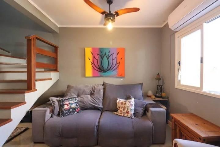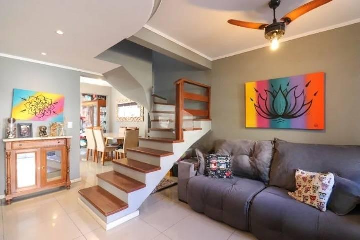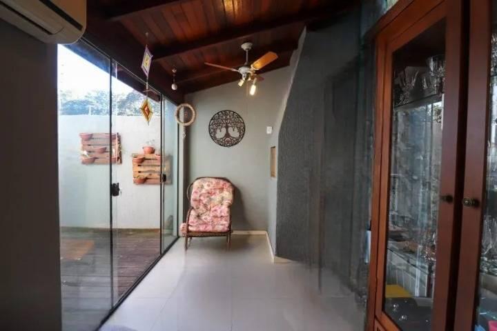 Casa 2 quartos no bairro Vila Nova em Porto Alegre, com 117m² privativos, 2 suítes, living, lareira, lavabo, cozinha com móveis planejados, banheiro, área de serviço, escada interna, jardim, pátio, churrasqueira , vaga para 2 carros descoberta.